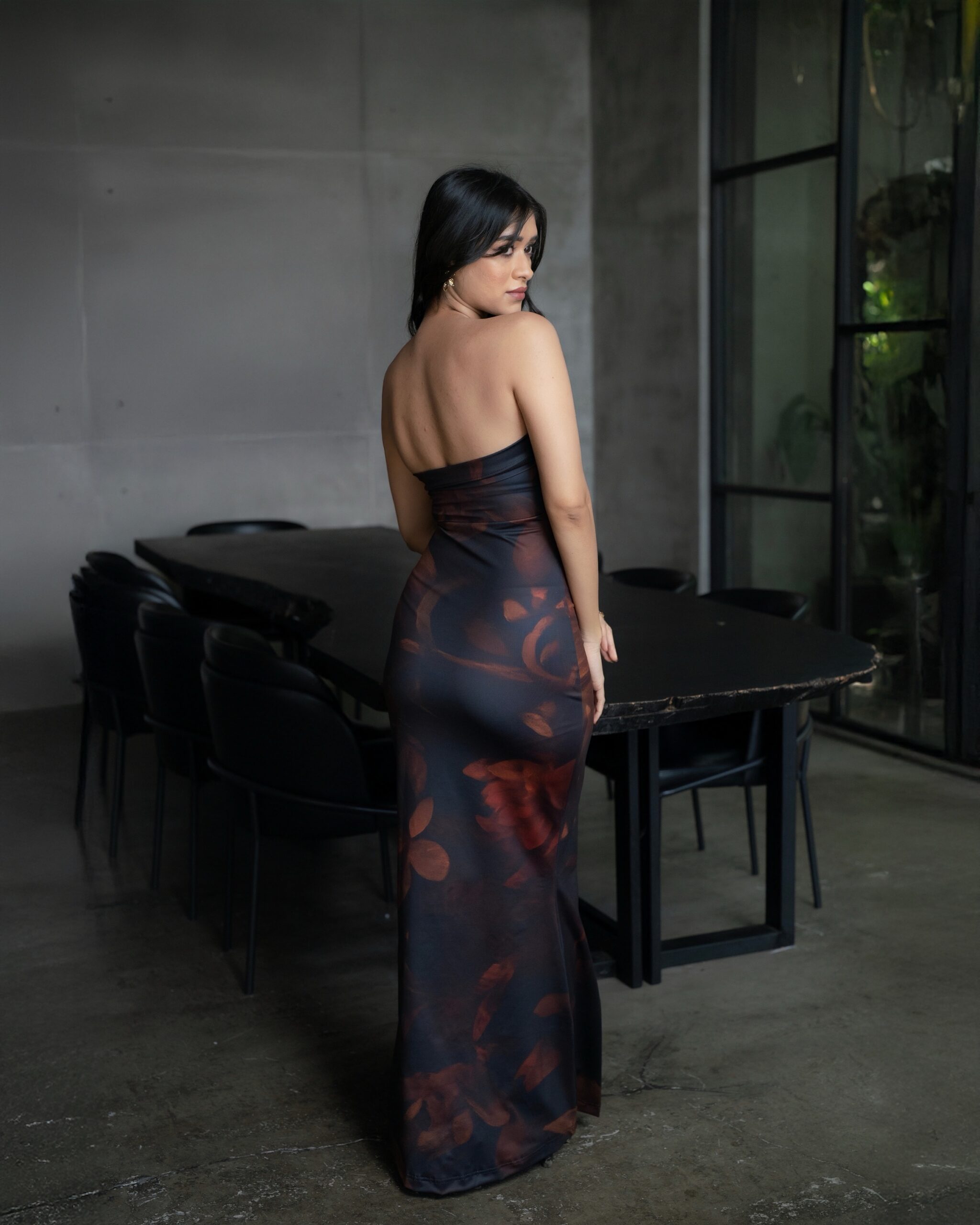 Brown printed maxi