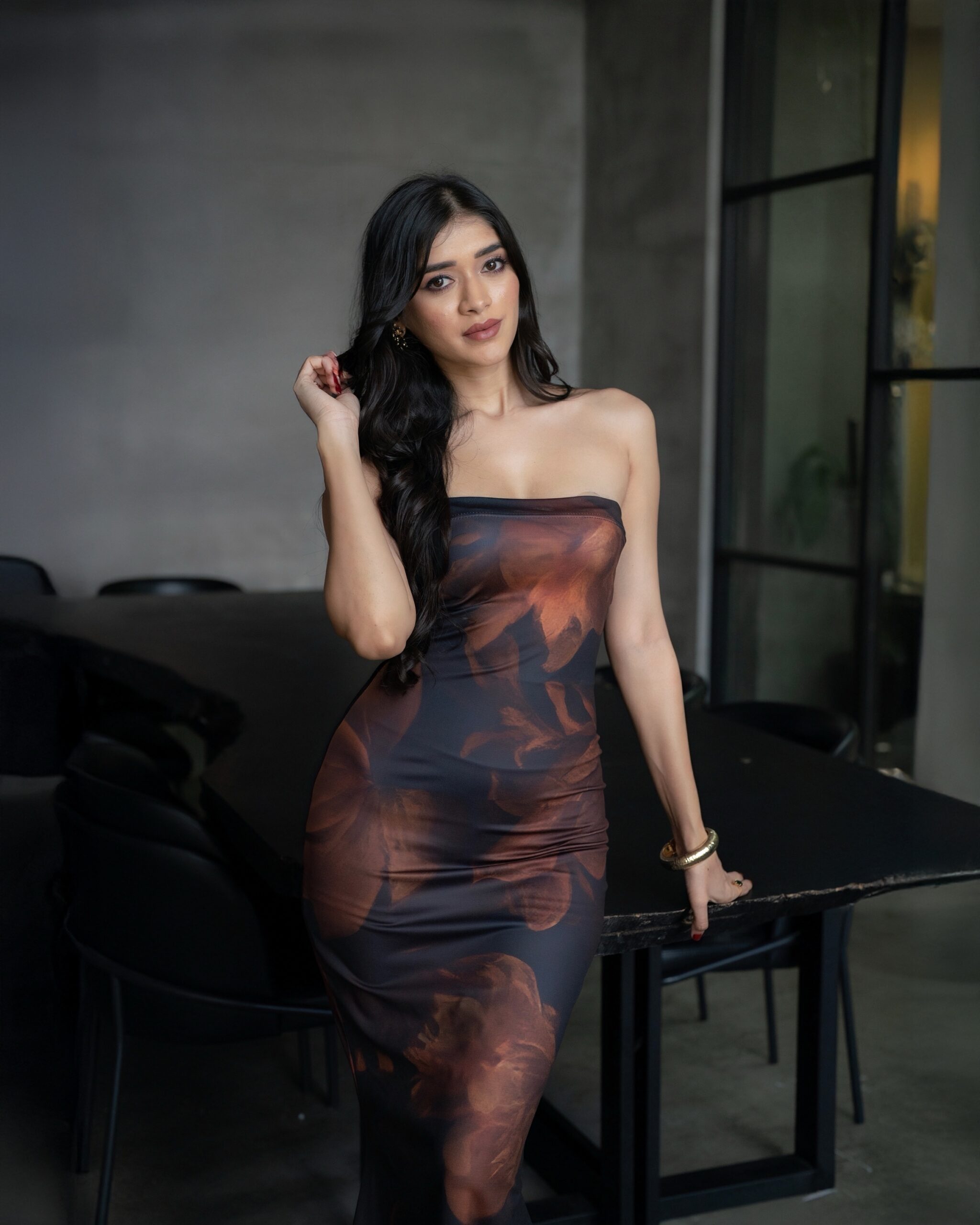 Ruched brown mini dress