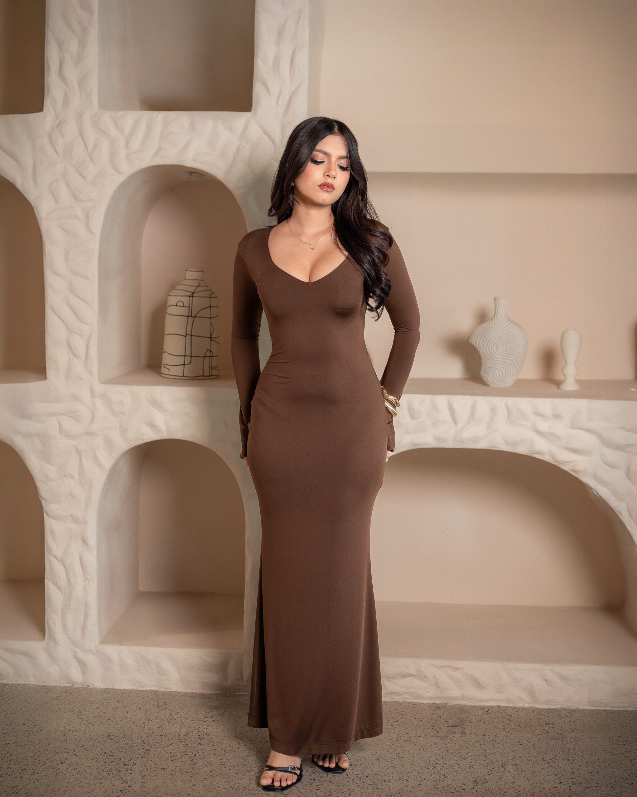 Home DRESSES Mira brown maxi