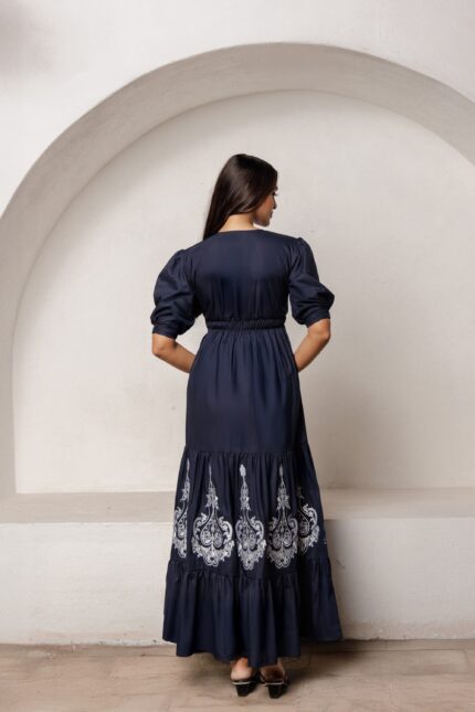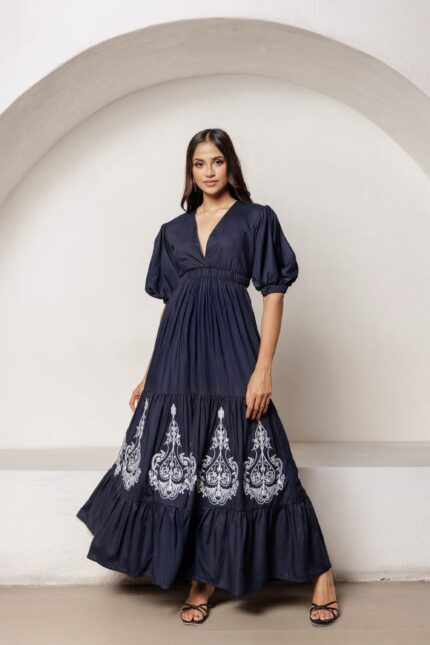 Serina embroidered blue maxi